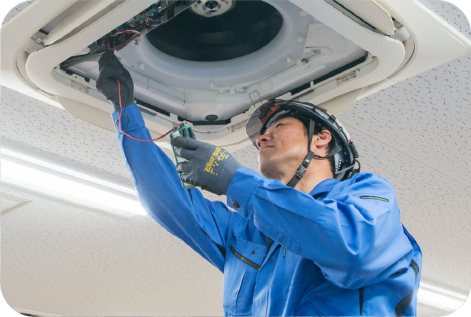 家庭用のエアコンや空気清浄機、給湯器。 さらには、オフィスビルや病院、ショッピングモールといった商業施設の空調設備まで、私たちの仕事は多岐にわたります。 機器の不具合を見つけ、直し、快適な空間を取り戻す私たちは、まさに「空調機器のお医者さん」。 地域の暮らしと安心を、確かな技術で支えています。