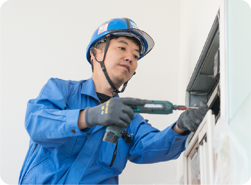 以前は大手企業の製造現場で働いていましたが、コロナ禍で出社も週1回になり、不安定な状況に。「どんな時代でも必要とされる仕事がしたい」と思い、手に職をつけることを考えました。空調機器の修理なら将来性があると感じ、神姫空調サービスへの応募を決めました。